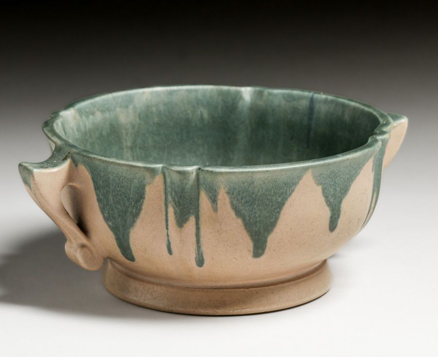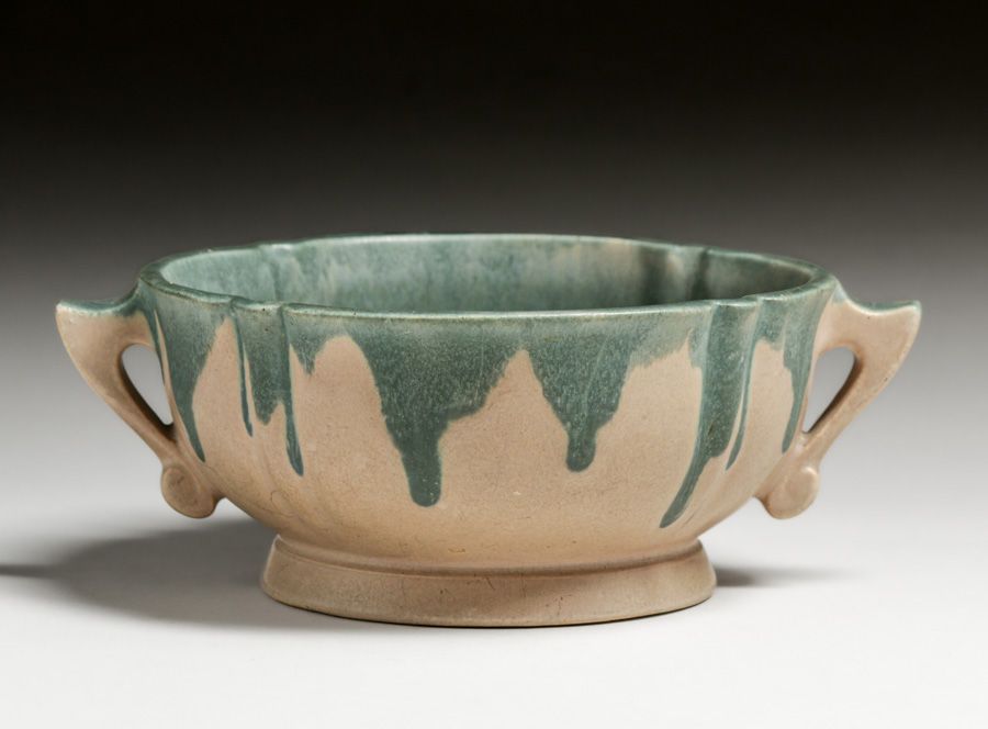Roseville Pottery Carnelian I Two-Handled Bowl c1920s. Signed. Perfect condition. 8 1/8"w x 3"h $375