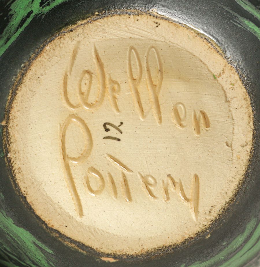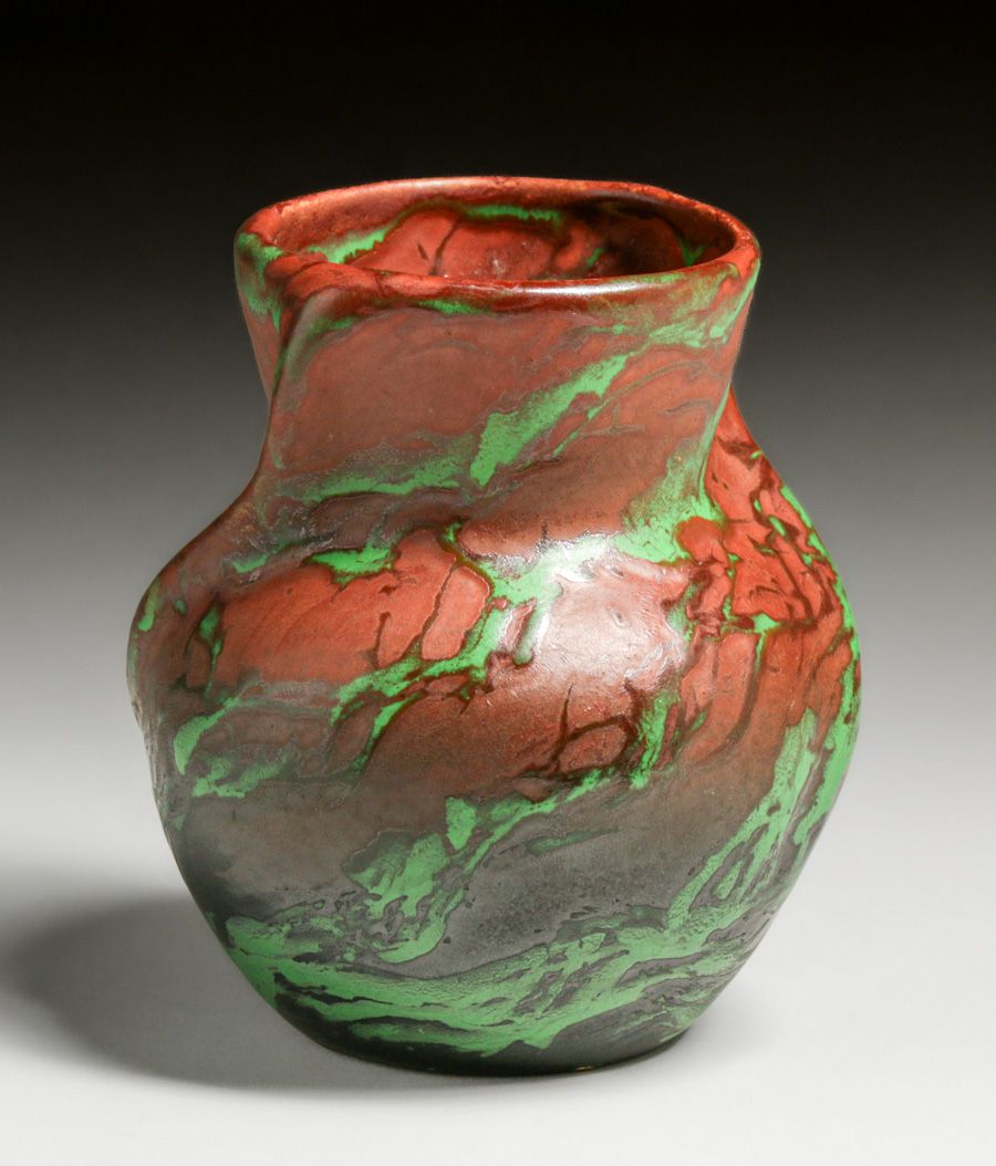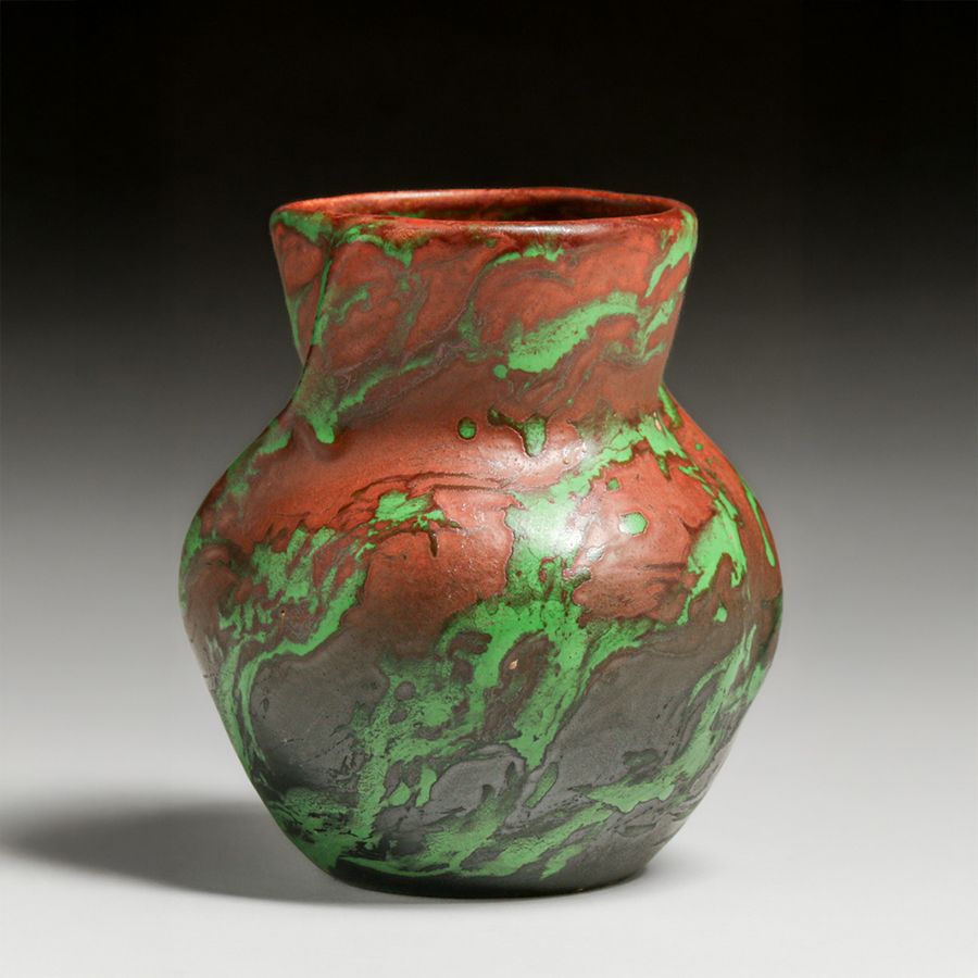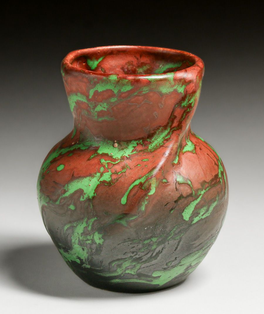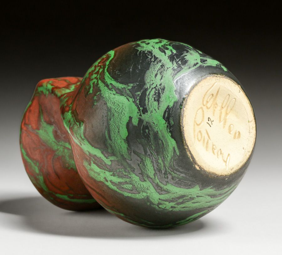Weller Greora Matte Green & Brown Vase c1930s. Signed. Perfect condition. 4 7/8"h x 3.75"d $325
