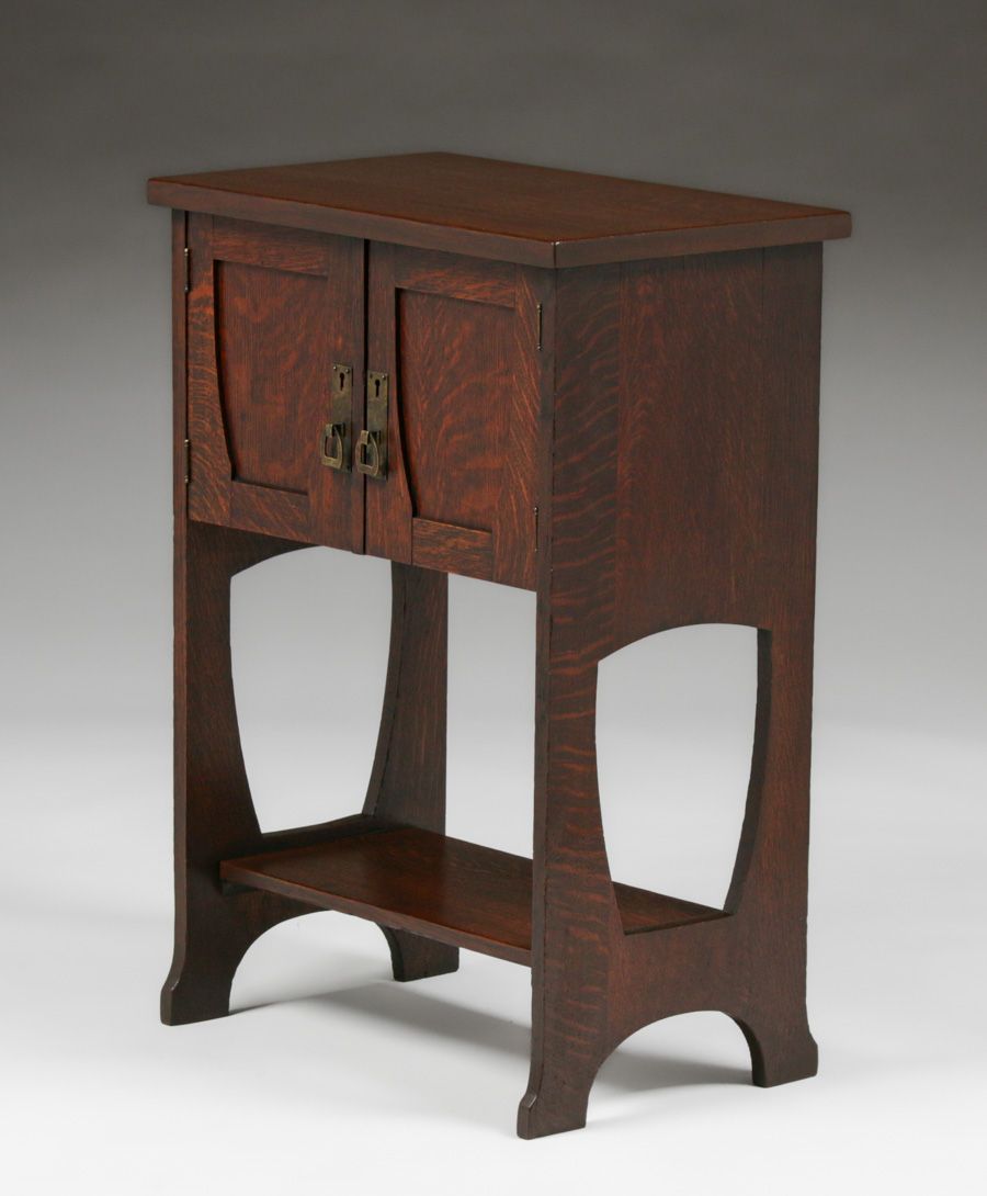 Grand Rapids Two-Door Oak Cabinet c1910. Unsigned. Top refinished perfectly to match excellent original finish. 20.75"w x 13"d x 29.25"h $2500