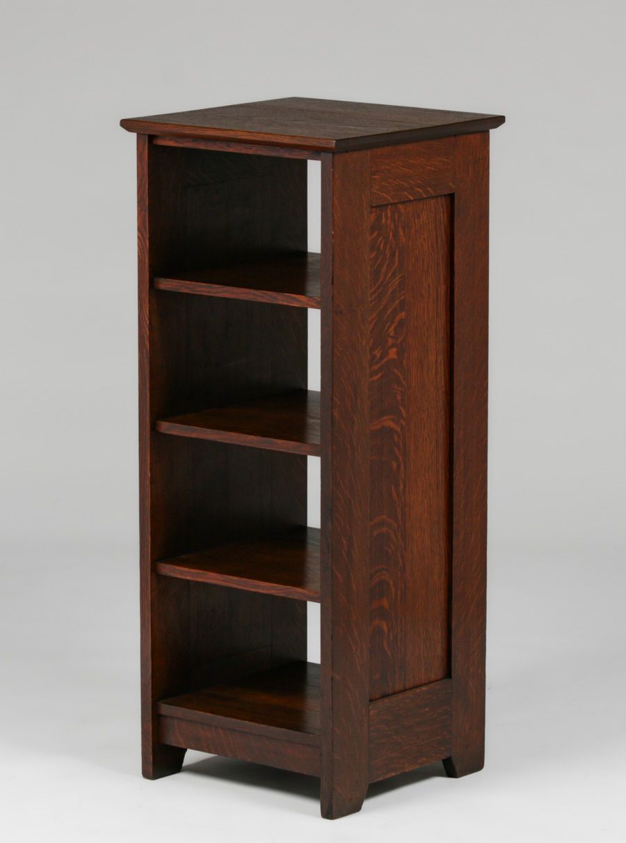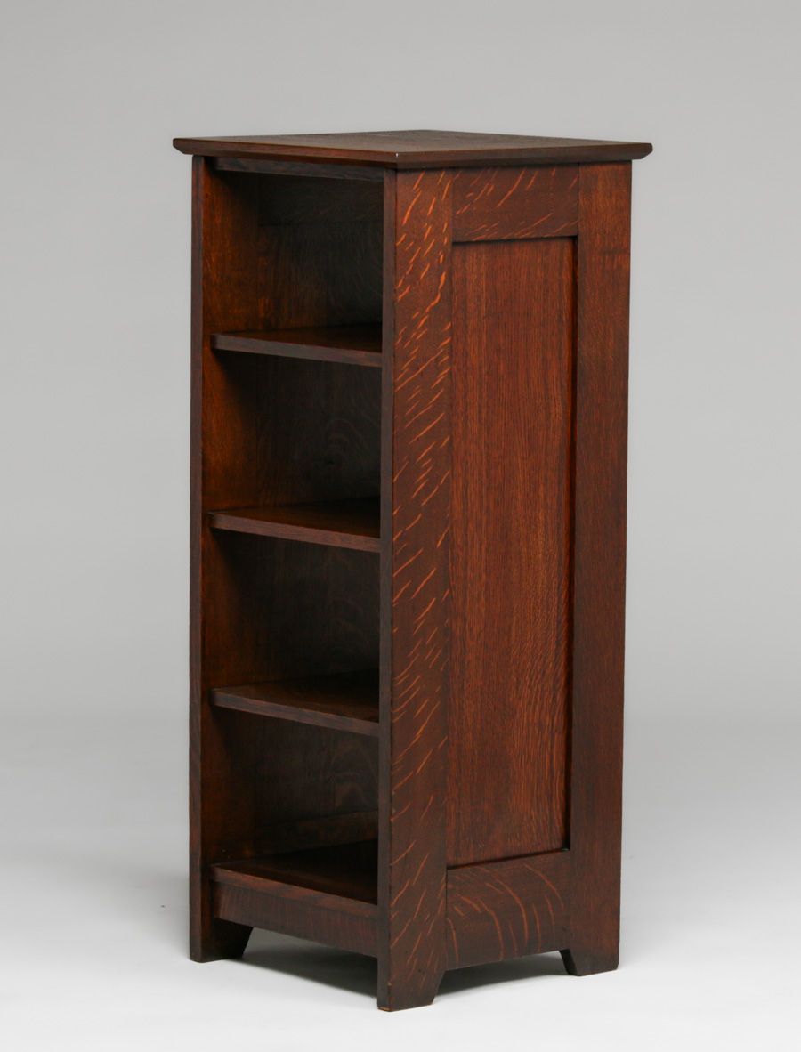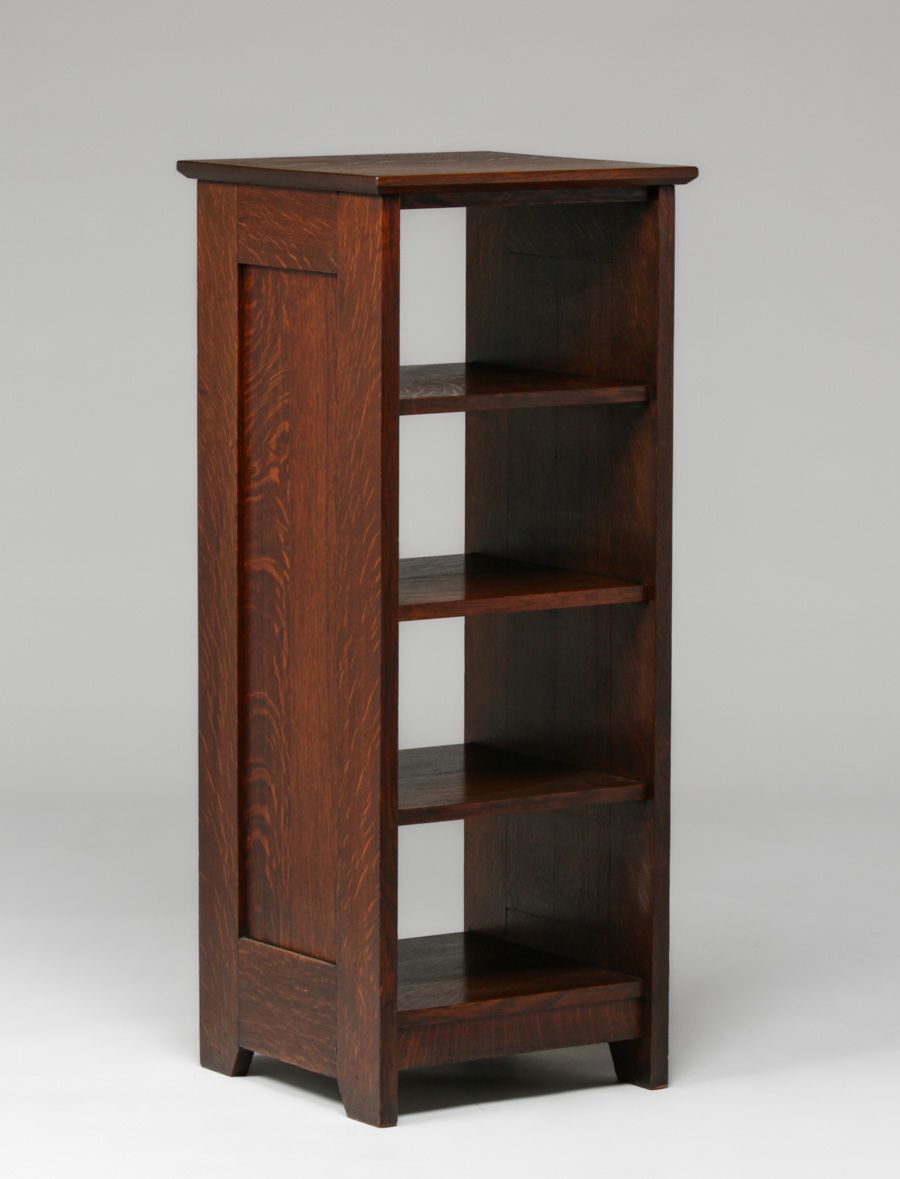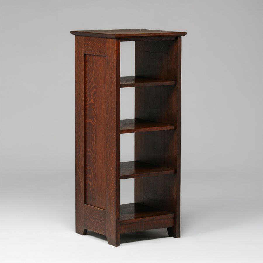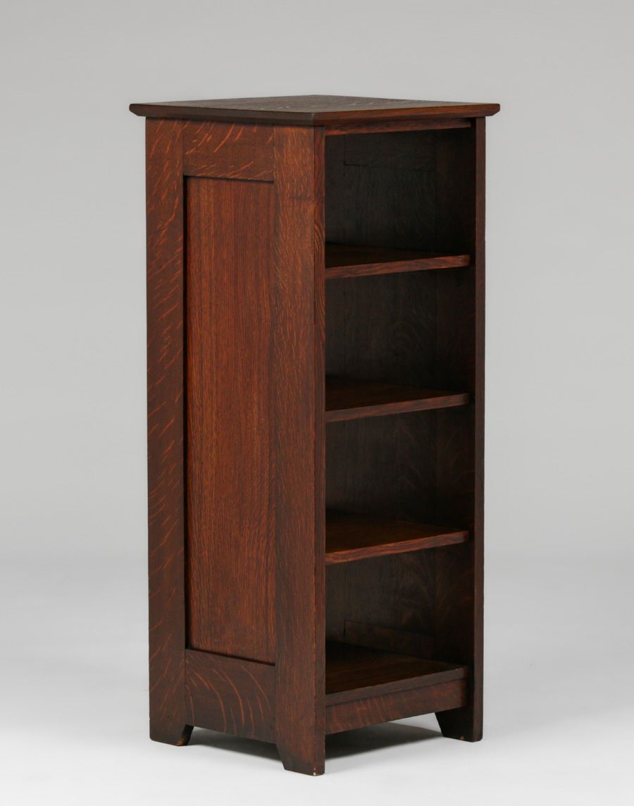 Early Gustav Stickley #548 Variant Magazine Stand c1904. Unsigned. Top refinished perfectly to match excellent original finish. 43.75″h x 17.75″ x 17.75″ $4500