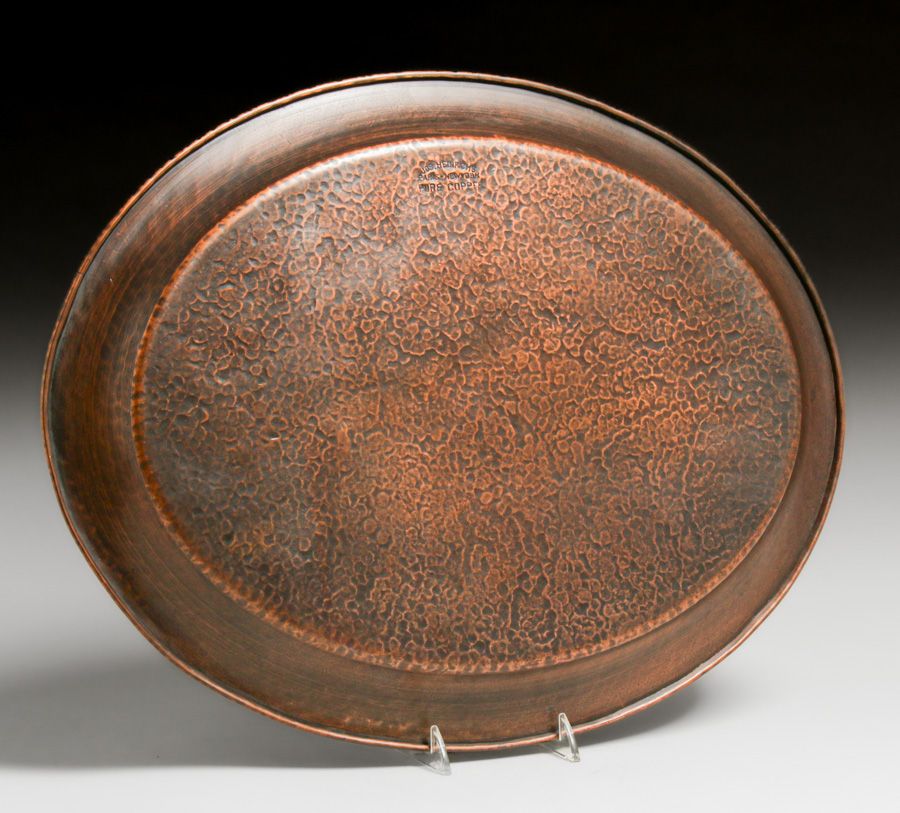 Joseph Heinrichs Hammered Copper Oval Tray c1910s. Signed. Excellent new patina. 16 3/8" x 12.5" $750