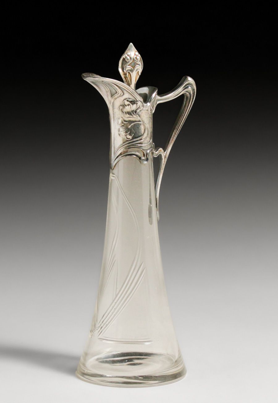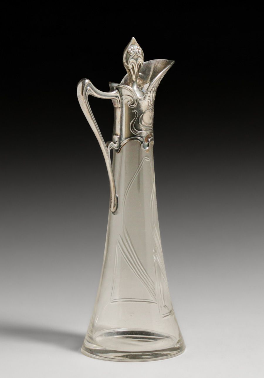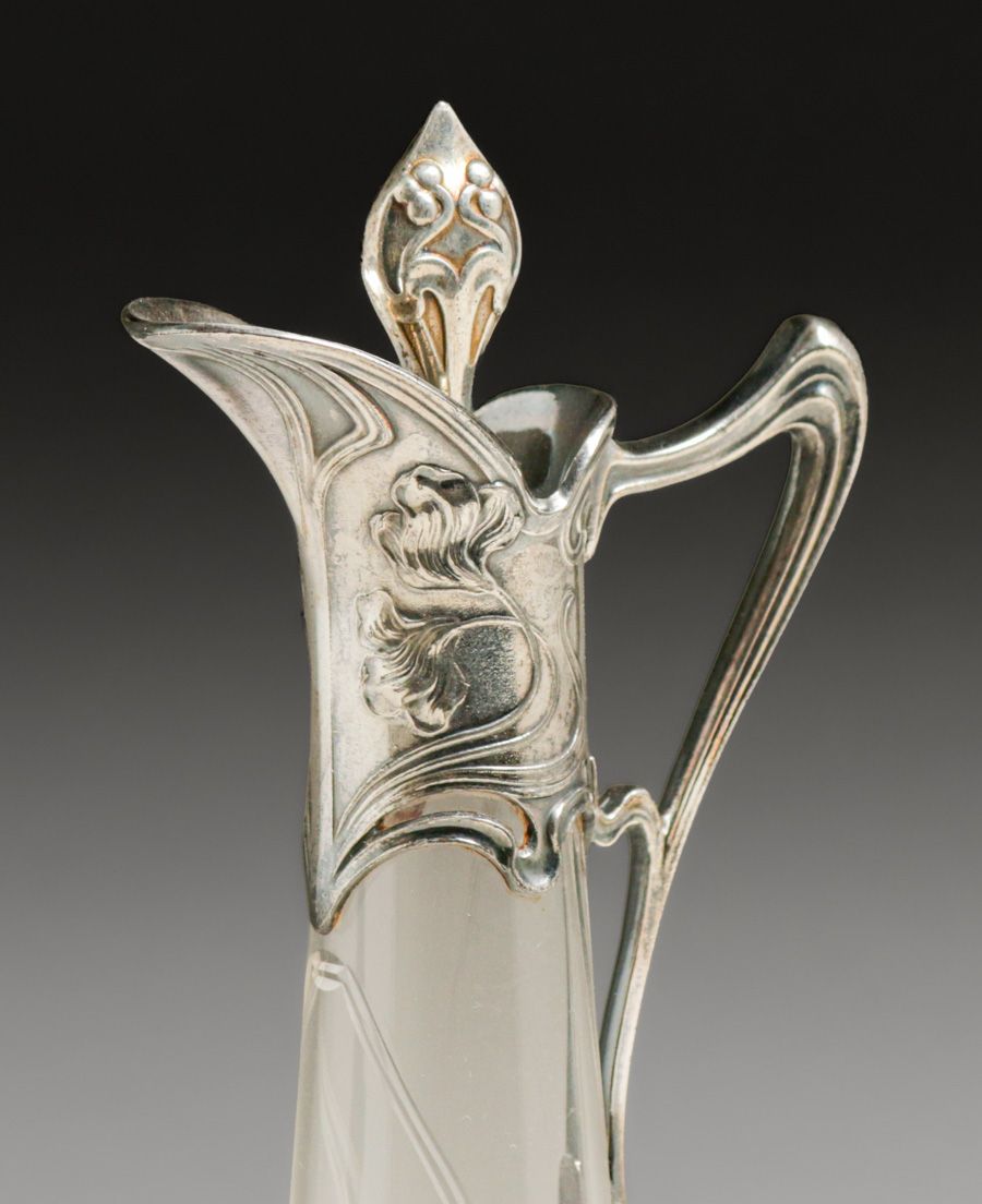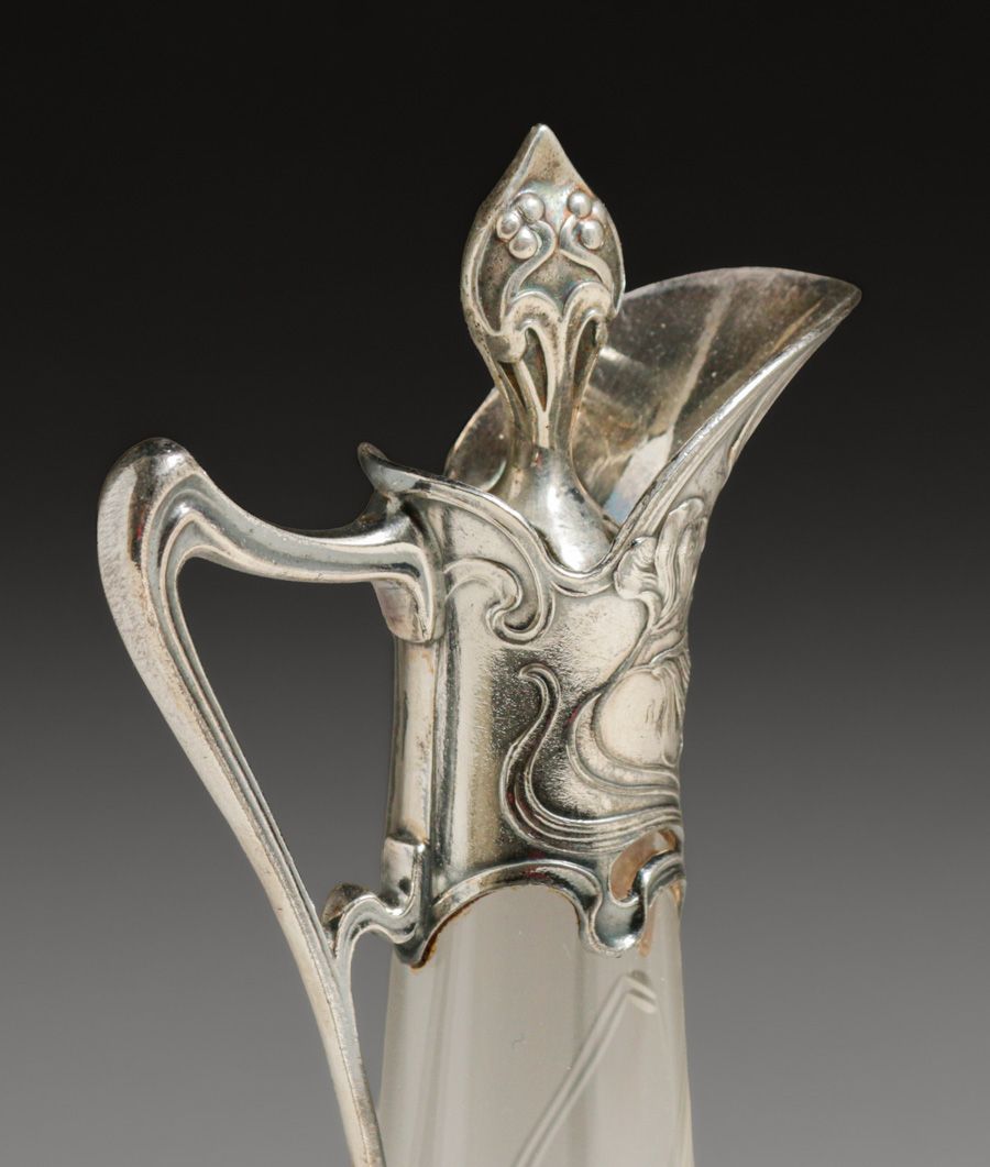 WMF – German Art Nouveau Silver-Plated & Acid-Etched Ewer c1905. Signed. Perfect condition. 9″h x 3.5″w x 3″d $550