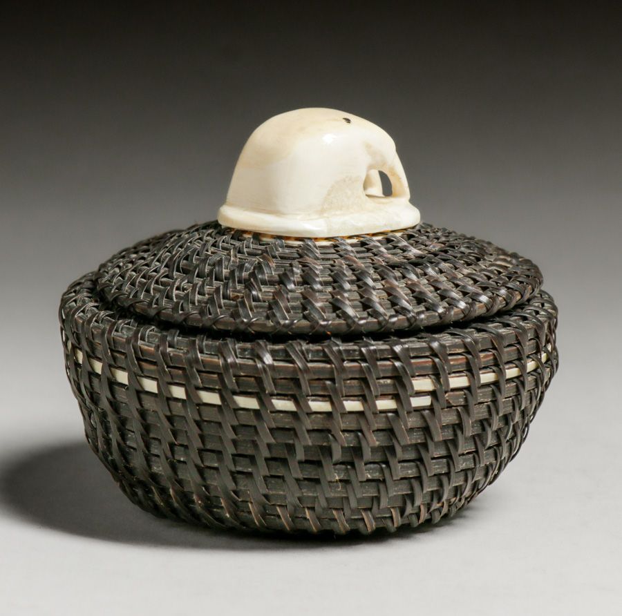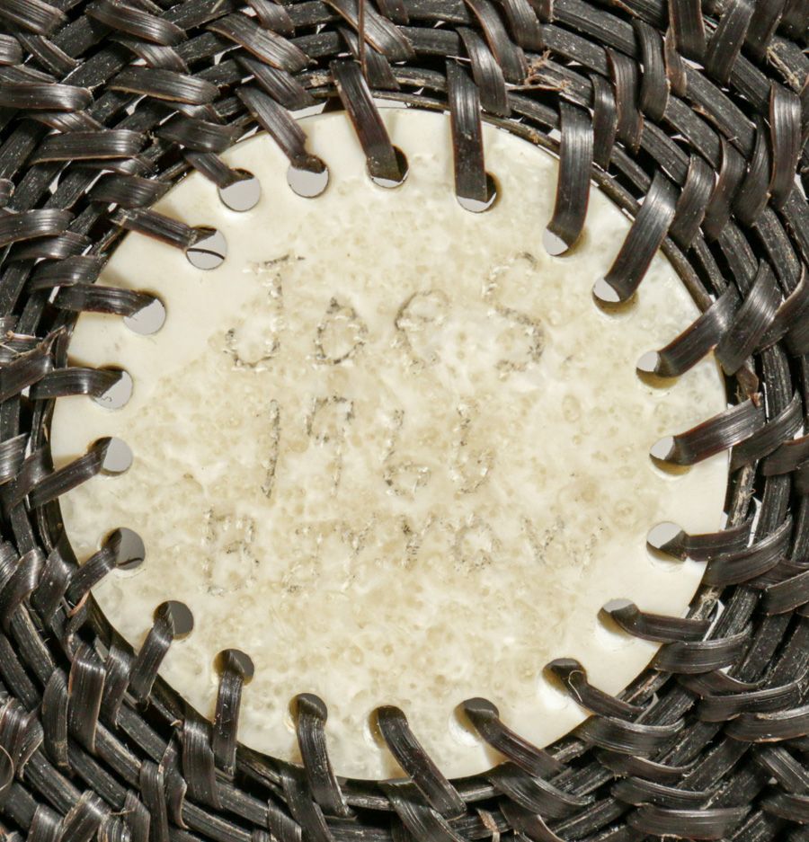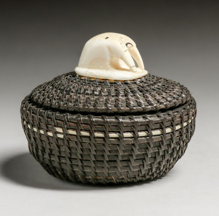 Joe Sikvayugak (1898-1983) Alaskan Inuit Baleen Basket 1966. Signed "Joe S Barrow" from Pt Barrow, Alaska. Signed. Excellent condition. 3.25"d x 3"h $2200